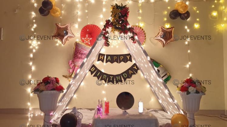 - Curtain and fairy lights- Buy light white curtains/net tent(5 ft length and 4 ft width) to surround the bench area or seating area. For embellishments, set up fairy lights along the length of the curtain. Go for the sparkly yellow ones!